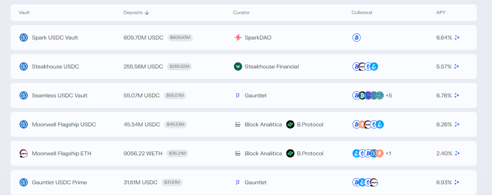 - Lending Protocols: Morpho, Aave, and Spark rank first, second, and third in TVL, ensuring robust liquidity for users.