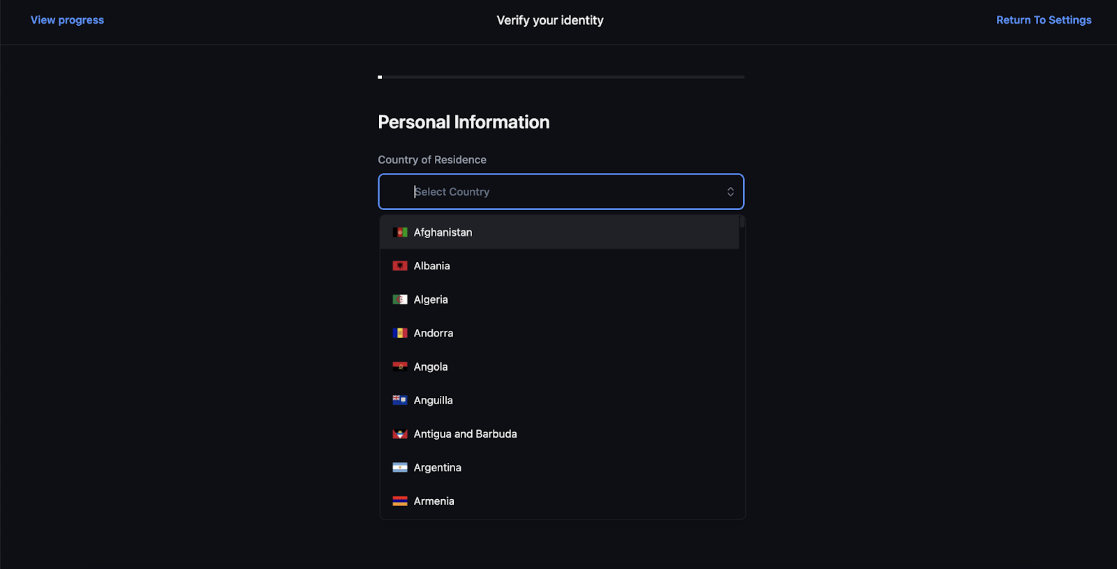 Step 2: Complete identity verification (KYC) using a national ID, driver’s license, or passport.
