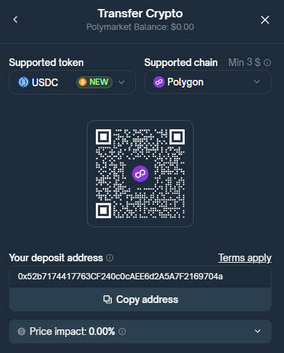 Before you can start making predictions, you need to fund your Polymarket account with USDC on the Polygon network.