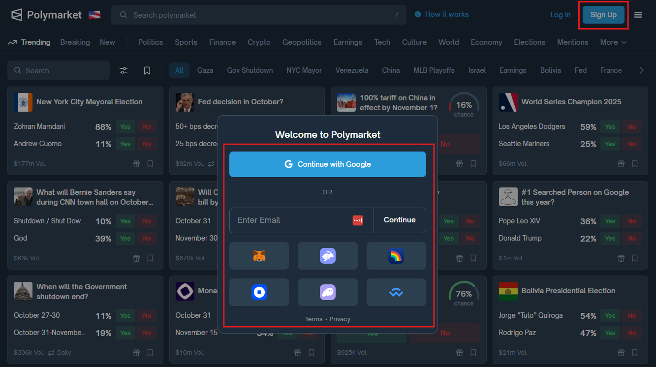 - Binary Markets: Every market asks a yes-or-no question (e.g., "Will Bitcoin reach $200,000 by December 31, 2025?"). Users buy "Yes" or "No" shares.