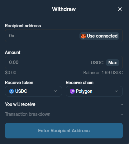Your USDC will be transferred to your specified address on the Polygon network. From there, you can bridge to other networks, convert to other assets, or withdraw to fiat through an exchange.