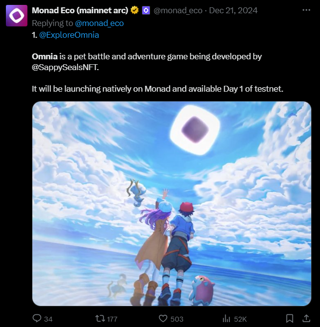 Considered one of the flagship apps on Monad, Omnia boasts polished storytelling and graphics. Moreover, Omnia has been frequently promoted by Monad’s official accounts, consistently appearing among the top Dapps highlighted in posts on X.