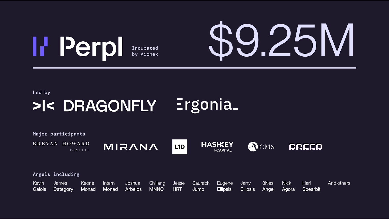 Perpl raised $9.25M in May 2025 from Dragonfly Capital, CMS Holdings, HashKey, and Brevan Howard Digital.