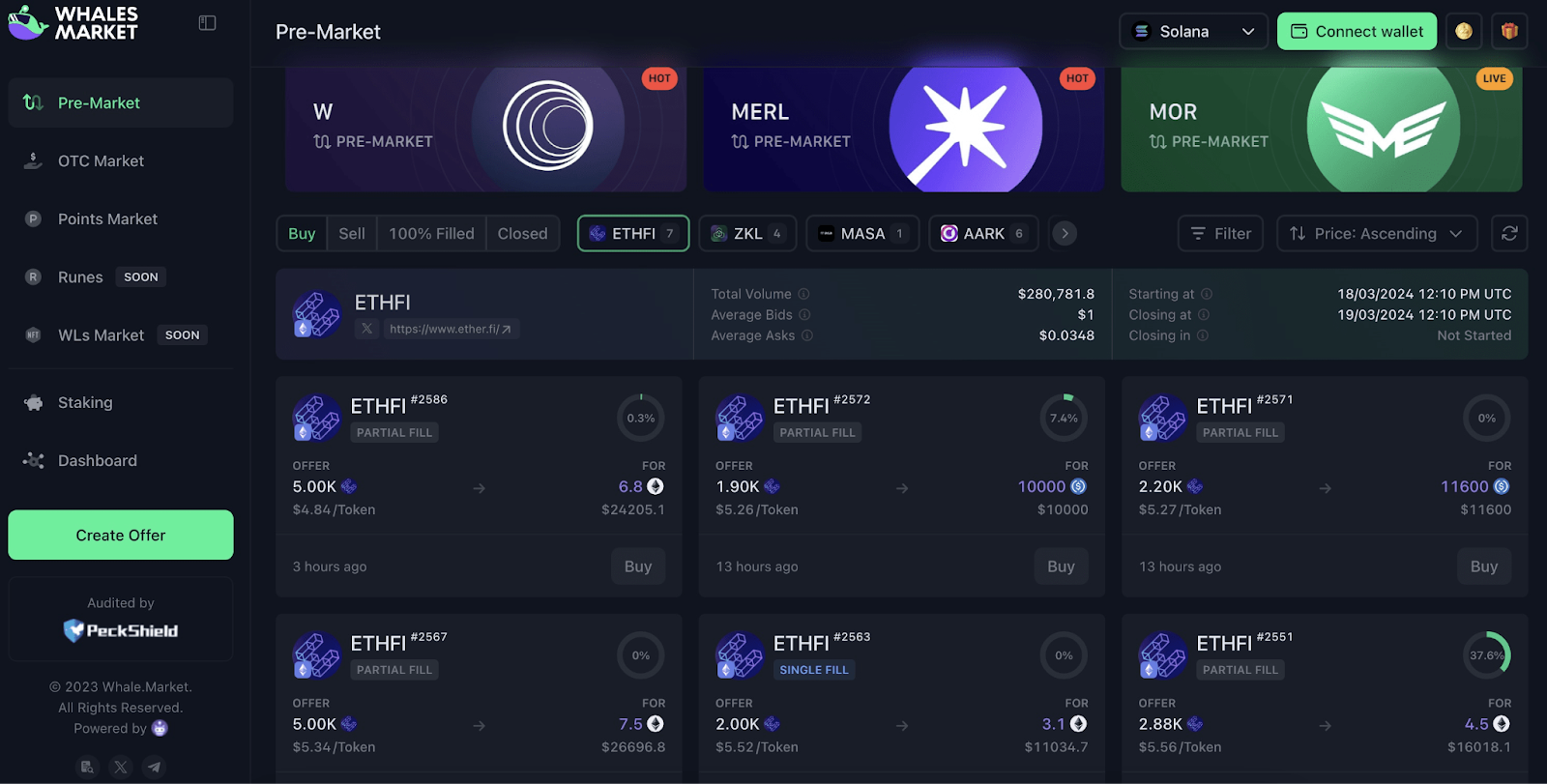 Explore the dynamics of premarket crypto trading on Whales Market, the leading decentralized exchange (DEX) for secure OTC pre-market trading. Here, users can buy and sell early-stage tokens, vested allocations before official listings, unlocking unique investment opportunities in the crypto pre-market ecosystem.