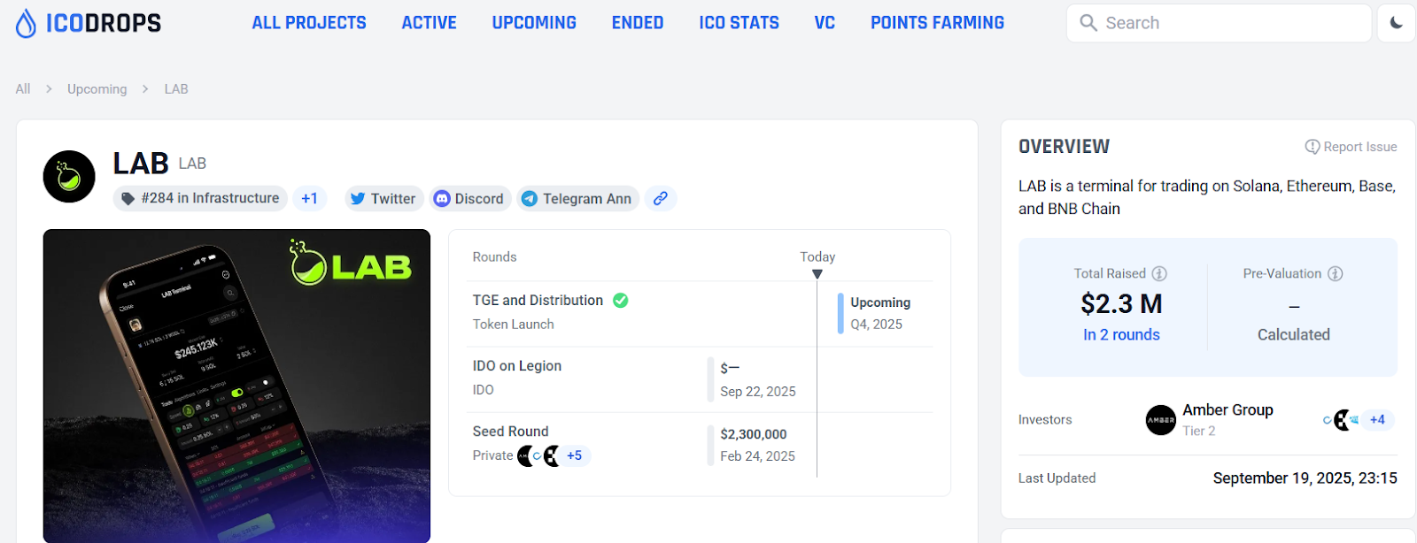 By ICO Drops, LAB has raised a total of $2.3M across two rounds. The project's funding rounds have the participation of leading investment funds in the cryptocurrency market such as: Kucoin Ventures, Amber Group, OKX Ventures,...