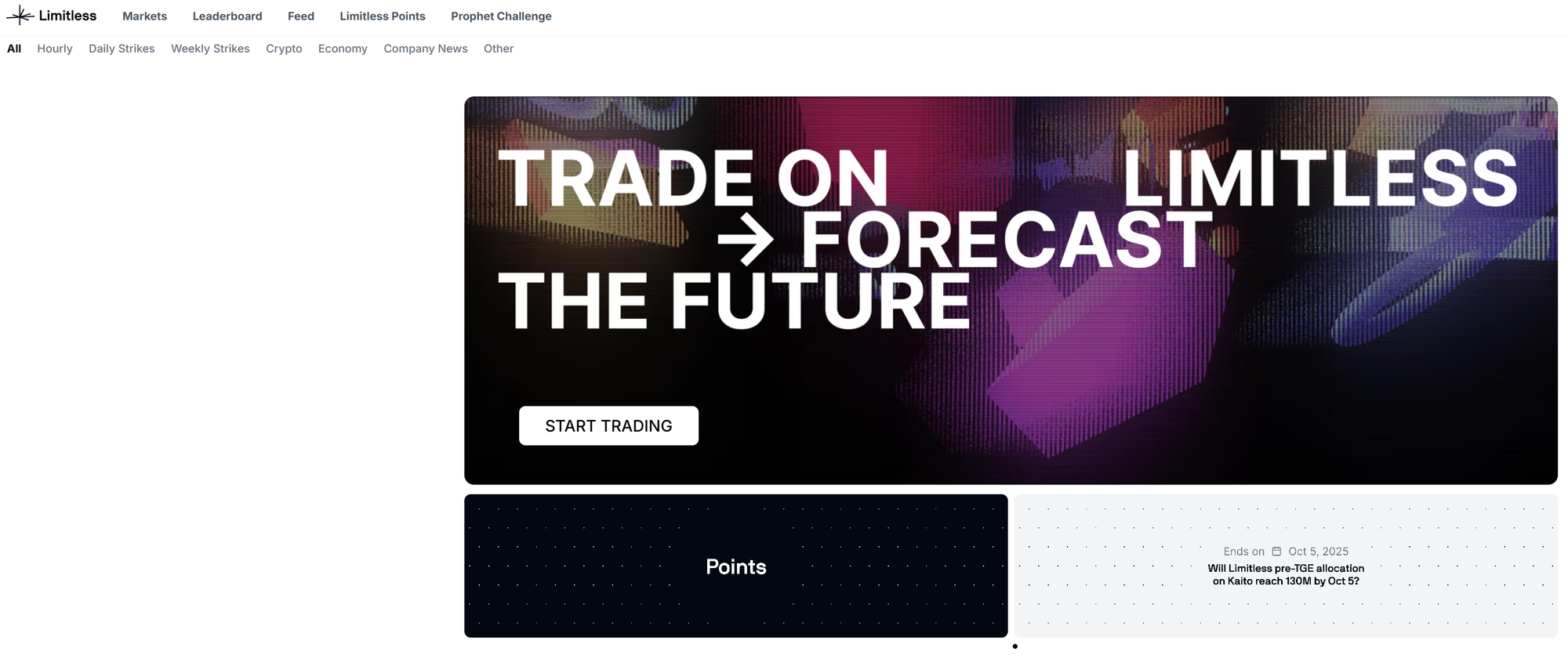 Limitless operates by creating prediction accross different events, such as crypto price movements, stock trends, or economic events.