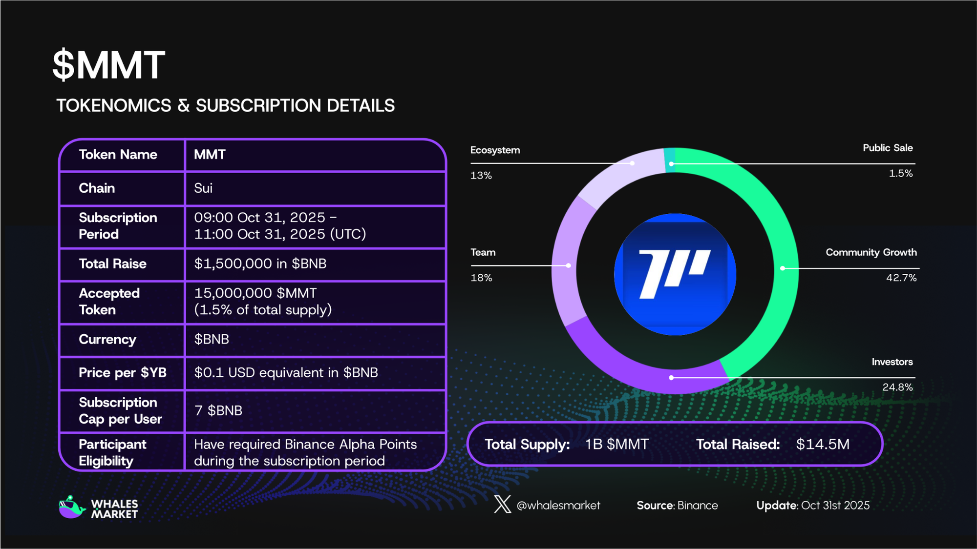 Currently, $MMT is trading at $0.75 on Whales Market. Whales Market is the leading pre-market DEX platform to trade pre-TGE tokens and allocations, with over $300 million in volume, no middlemen, trustless and on-chain.